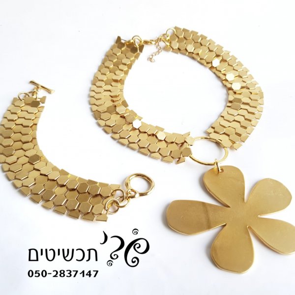 סט עגילים + שרשרת ציפוי זהב 450 ש"ח