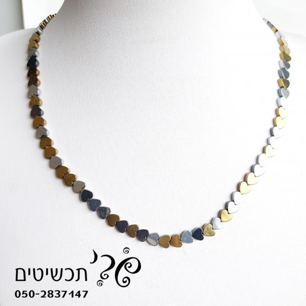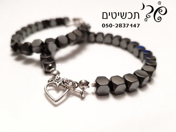 צמידי רגל מאבן המטייט בצורת לבבות כסף
