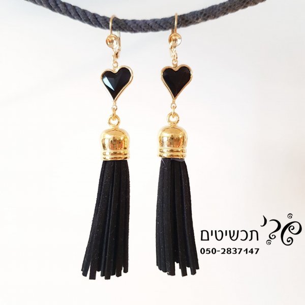 עגילי גדילים עם תליון לב
