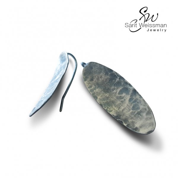 עגילי עלה מכסף 925 מושחר