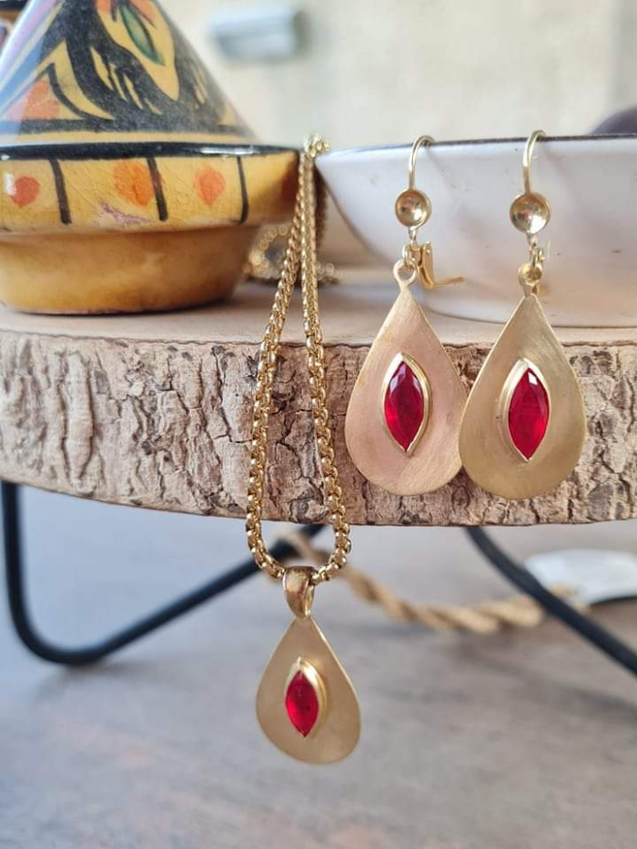 סט עגילים ושרשרת טיפה