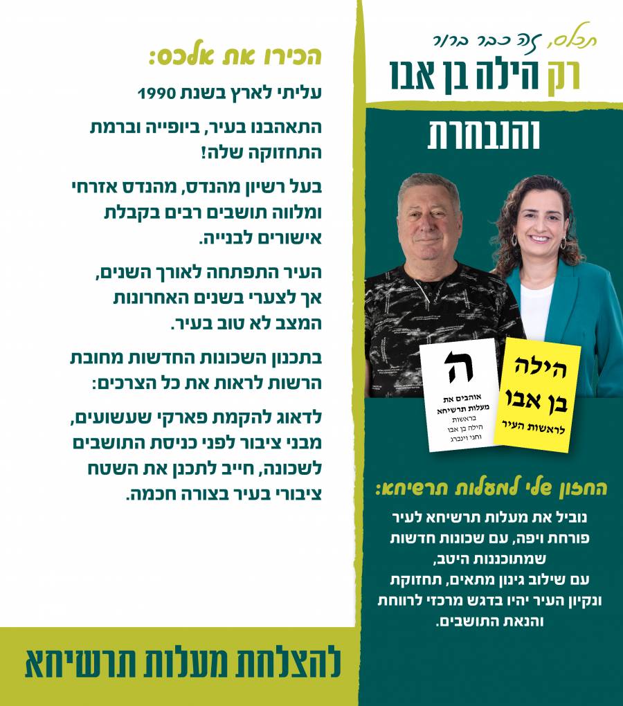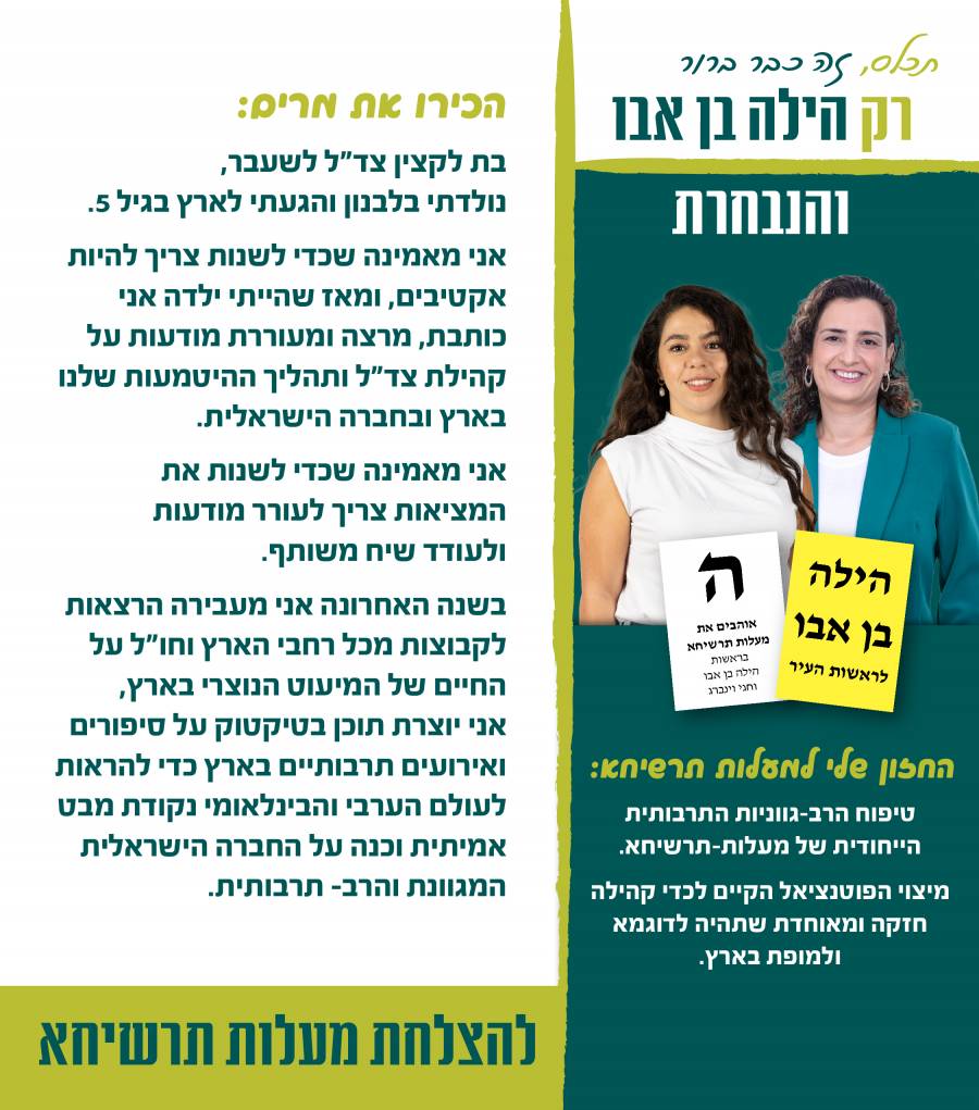 הילה בן אבו לראשות עיריית מעלות תרשיחא