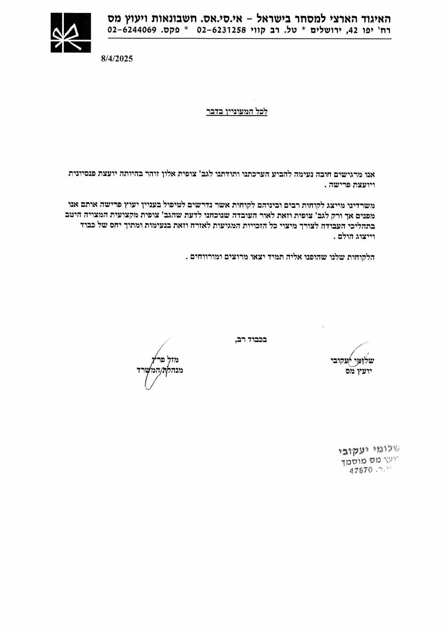 ממליצה בחום ובהערכה רבה על צופית כיועצת פנסיונית,