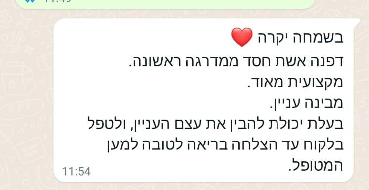 אנחנו מרגישים שיפור גדול בחייו, ואין לנו ספק שהרבה מזה בזכות הטיפול המסור שלה.