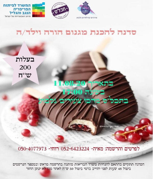 חם בחוץ! הילדים כבר משתגעים?! רוצים קצת זמן איכות נעים איתם? בואו להתפנק יחד איתם בסדנת הכנת מיני מגנום טעימה ומפנקת!!! עלות 200 שח (להורה וילד אחד). מחכים לכם!!