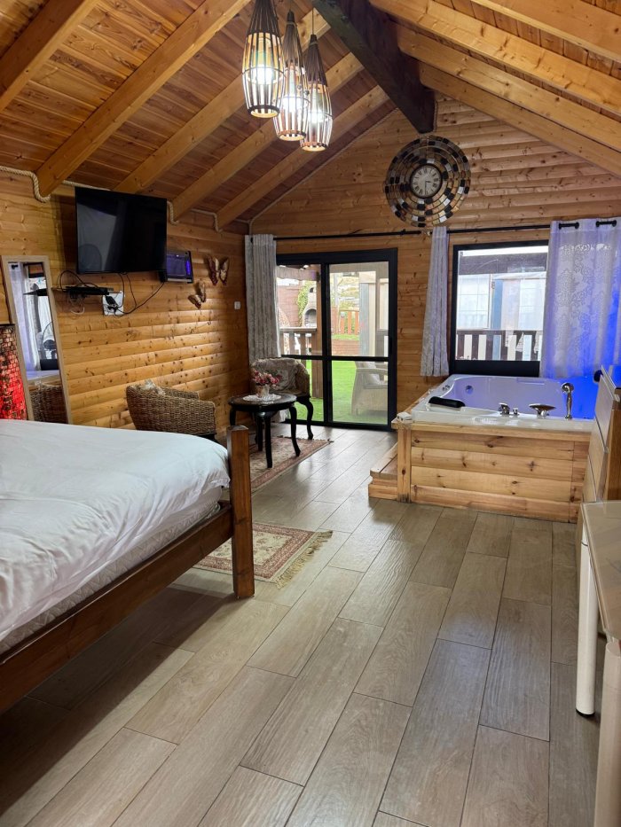 בחלק האחורי: 4 צימרים מאובזרים, כל אחד כ־35 מ״ר, עם חצר פרטית. פינת ישיבה. בריכה מחוממת פרטית. ג'קוזי גדול בכל צימר.