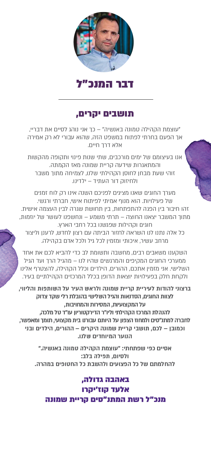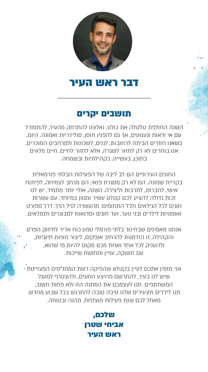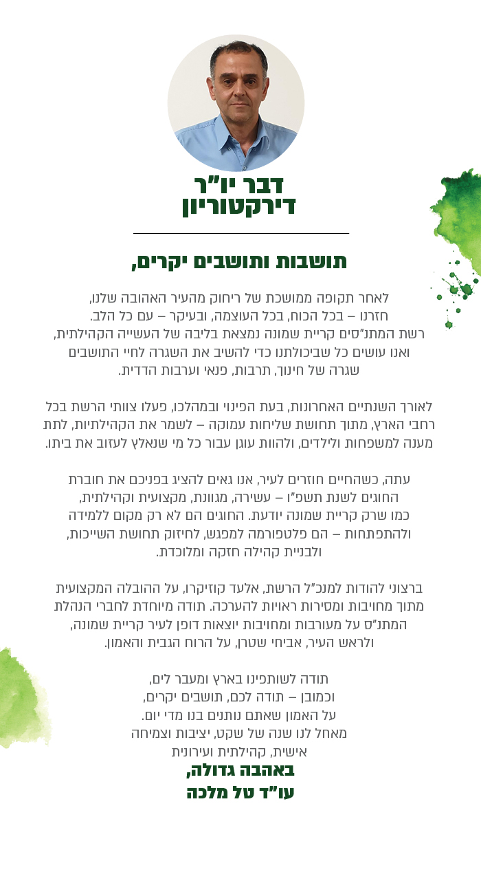 ברכת מנהל מתנסדבר יור הדירקטוריוןדבר ראש העיר