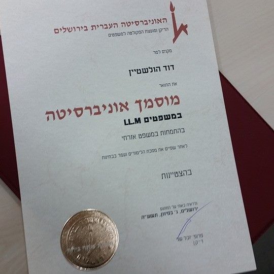 עו"ד דוד הולשטיין בעל התארים האקדמיים האלה: