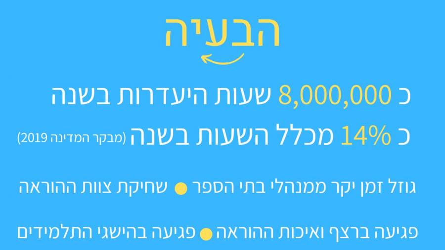 בנוסף, היעדרות מורים גוזלת זמן יקר ממנהלי בית הספר וגורמת לשחיקה בקרב צוות ההוראה בבית הספר.
