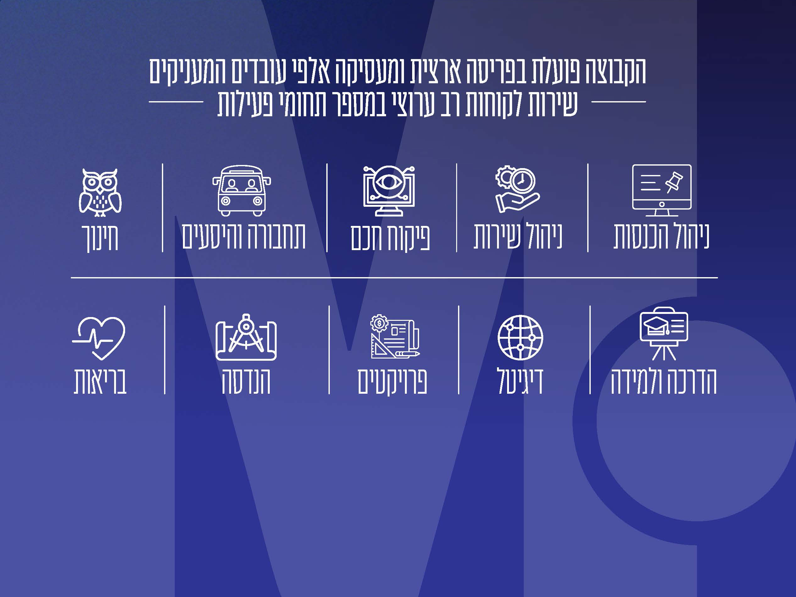 Mgroup הקבוצה המובילה במתן שירותים למגזר הציבורי בישראל מזה 30 שנה, מתמחה בהקמה ותפעול של תהליכים מקצועיים ושירותים מבוססי טכנולוגיה מתקדמת עבור משרדי ממשלה, רשויות מקומיות, תאגידים עירוניים, חברות כלכליות וגופים מוסדיים.
