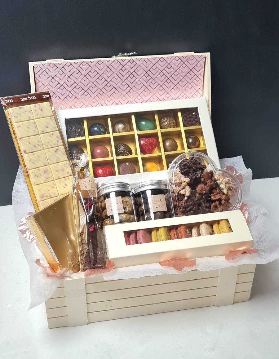 פרלינים משובחים בטעמים חלומיים הנארזים במארזים בגדלים משתנים, דרג'ה שוקולד מיוחדים, מרשמלו ומרמלדות מפירות אמיתיים, מרציפנים מסוגי אגוזים שונים, סוכריות טופי בטעמים מגוונים, ממרחים, מקרונים ועוד.