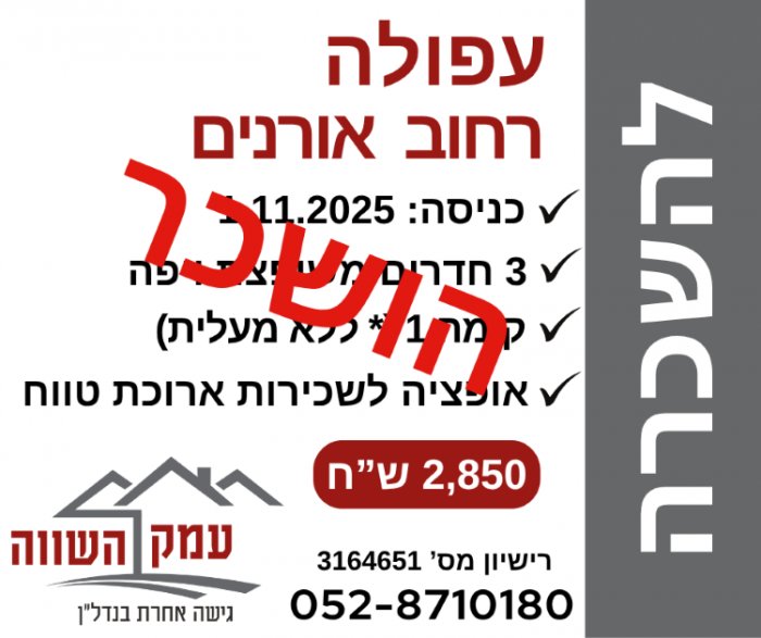 השכרה - מושב רמת צבי