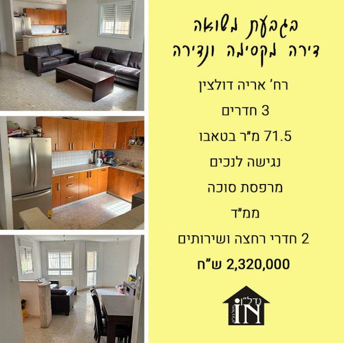 להשכרה בהוד דניה, דיור מוגן, רח' גולומב, קרית יובל