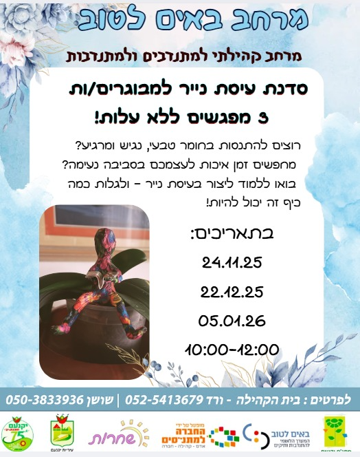 הרשמה טלפונית במזכירות המתנ"ס 04-9893986