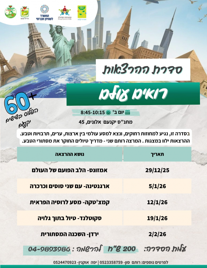 סדרת הרצאות "רואים עולם" שיצרנו במיוחד עבורכם.
