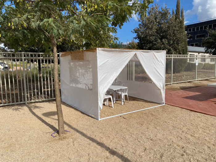נעדכנכם , שלנוחיותכם ולשימושכם/ שימוש עובדיכם במהלך ימי חוה״מ , הקמנו סוכה בשטח השצ״פ , מוזמנים להשתמש.