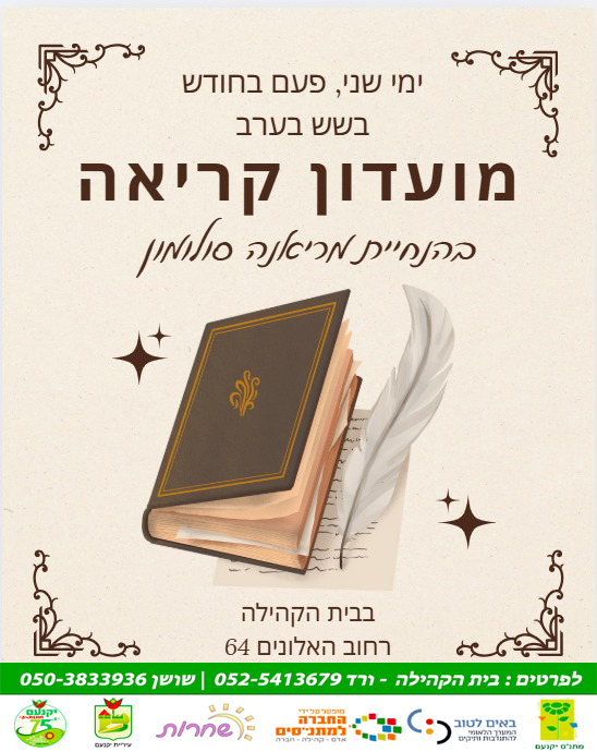 לפרטים נוספים ניתן לפנות לרכזת התכנית ביקנעם- ג'אנט שושני 0524514283