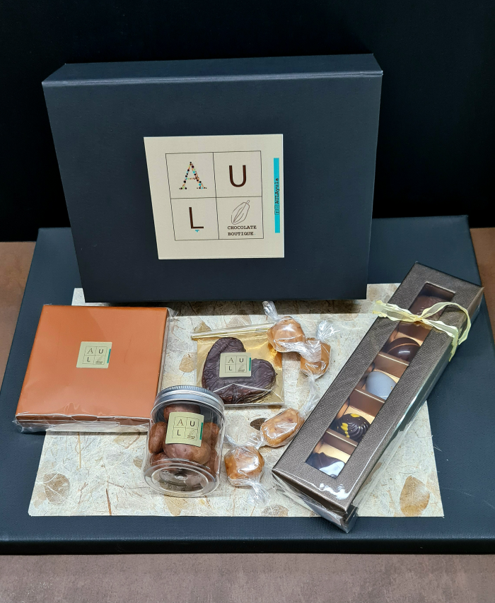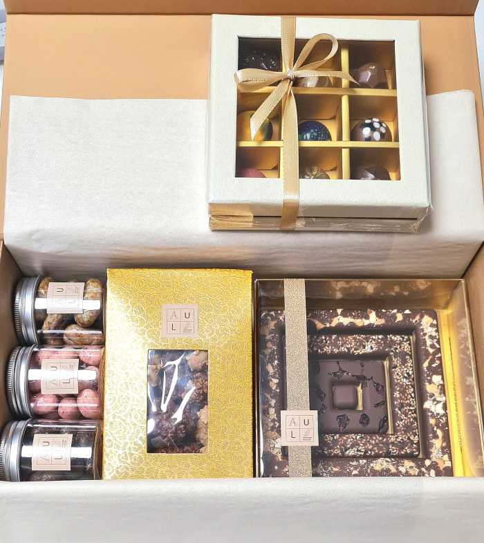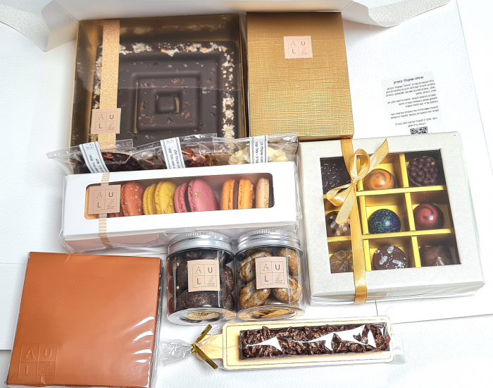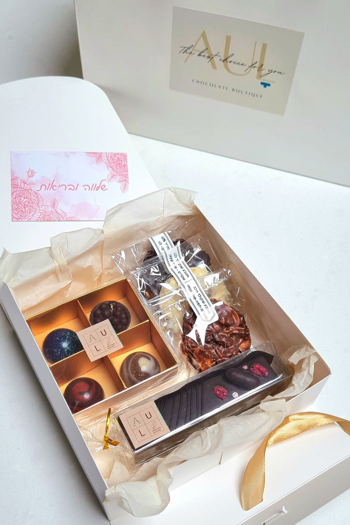 תיבת פינוקים מפנקת במיוחד שניתן לארוז בה המוווווון פרלינים ומוצרים משובחים הנרקחים בעבודת יד בבוטיק 'איולה'