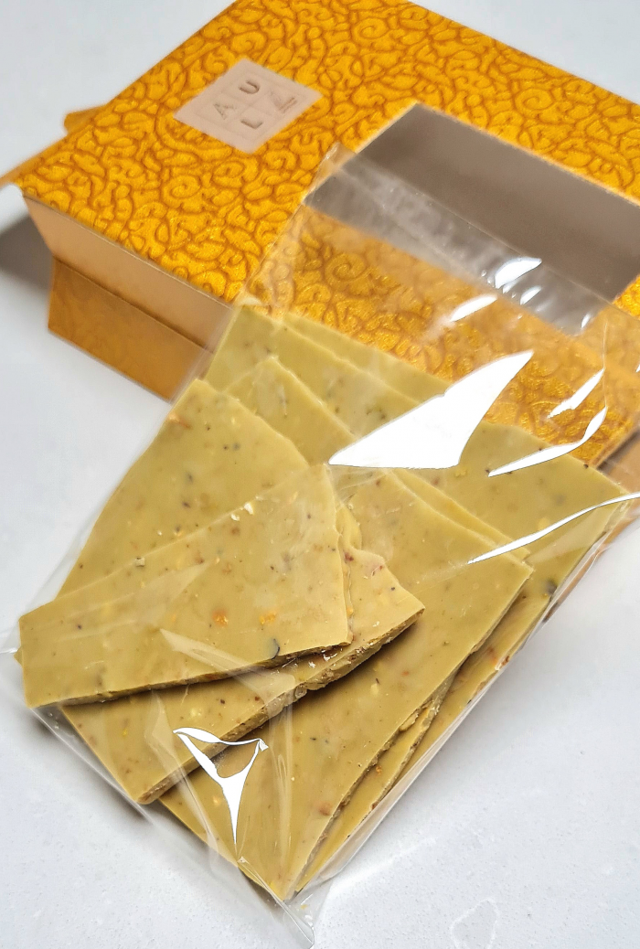 עם קראנצ'יות שברי פיסטוק ופייטה