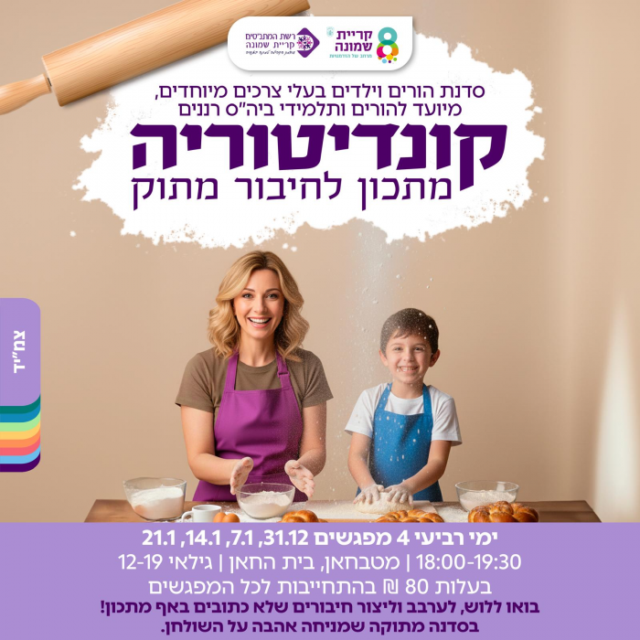 סדנת הורים ילדים קונדיטוריה להורי ותלמידי ביה"ס רננים בלבד