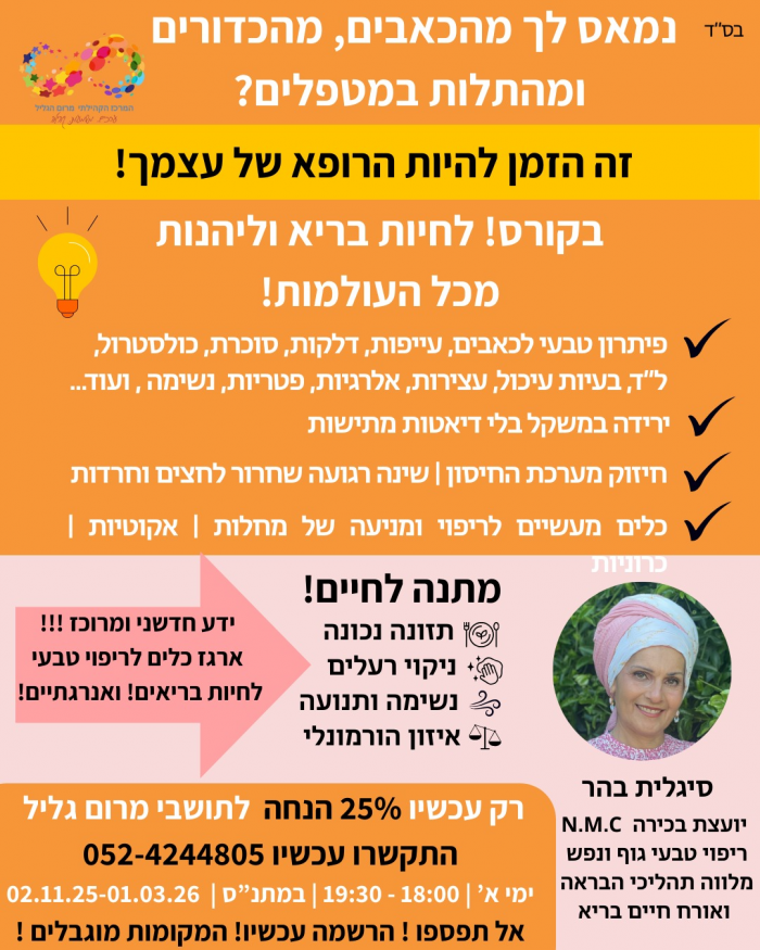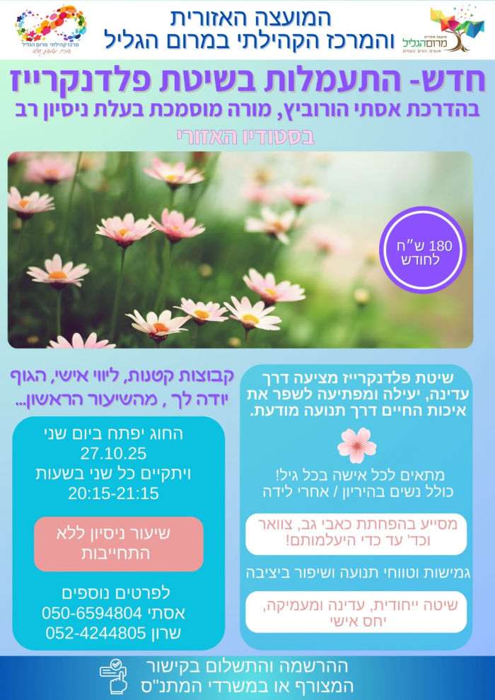הקורס הינו חצי שנתי ומיועד לכלל הקהילה במרום הגליל