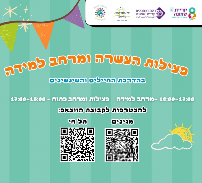 עיריית קריית שמונה, רשת המתנ"סים, מערך בינוי קהילה רובע א' וחוגי הסיירות של קק"ל מזמינים אתכם ל:
