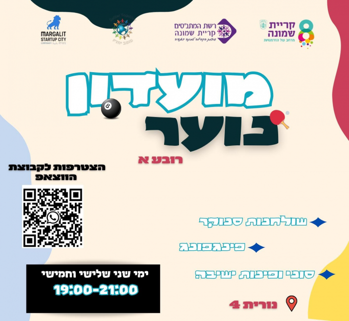 מערך בינוי קהילה רובע א' מזמין את כל נערי כיתות ז-יב למועדון הנוער של רובע א'