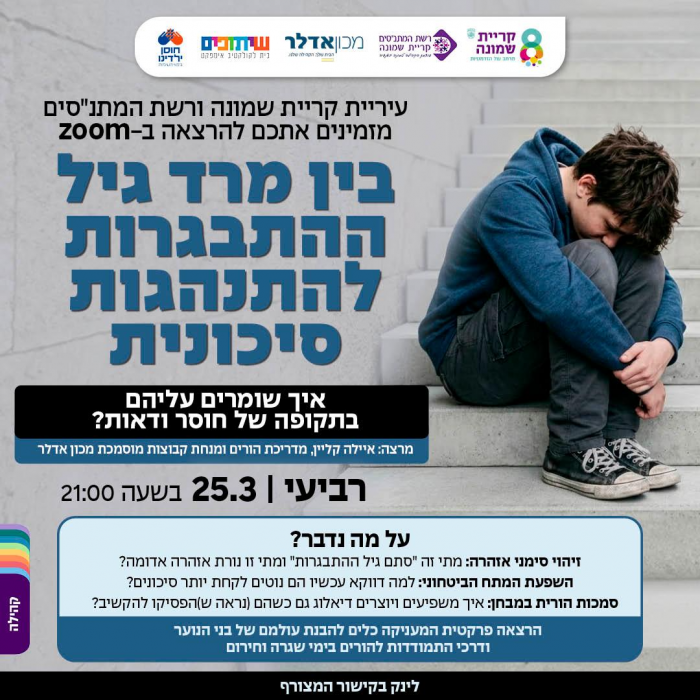 בה תקבלו כלים פרקטיים לזיהוי סימני אזהרה, הבנת מצוקה רגשית והתמודדות עם התנהגויות סיכוניות.